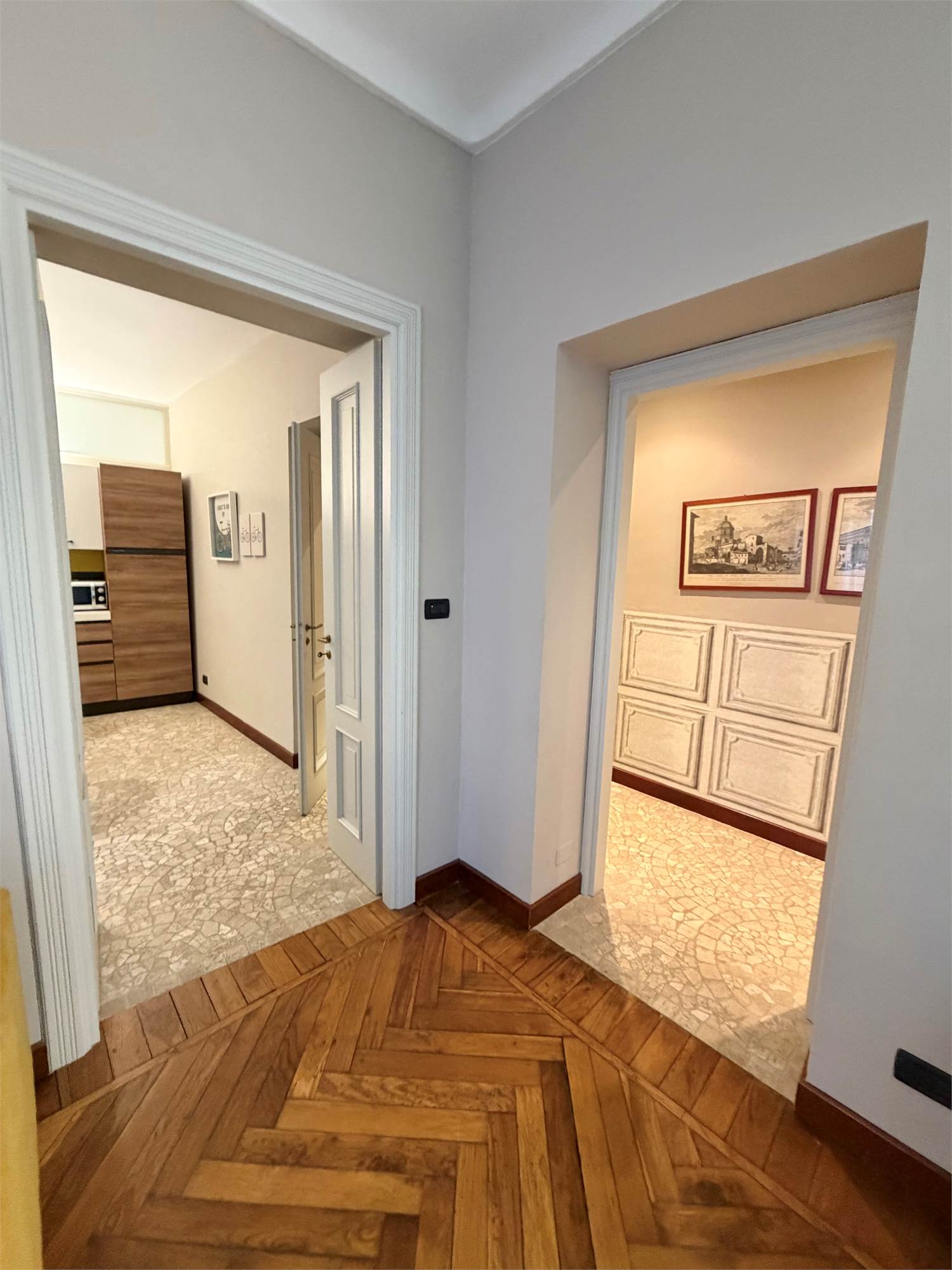 In the very heart of Turin, at Via Stampatori 4, corner of Via Barbaroux, within the elegant and historic 17th-century Palazzo Scaglia di Verrua, we offer for sale a renovated second-floor apartment overlooking a quiet internal courtyard.