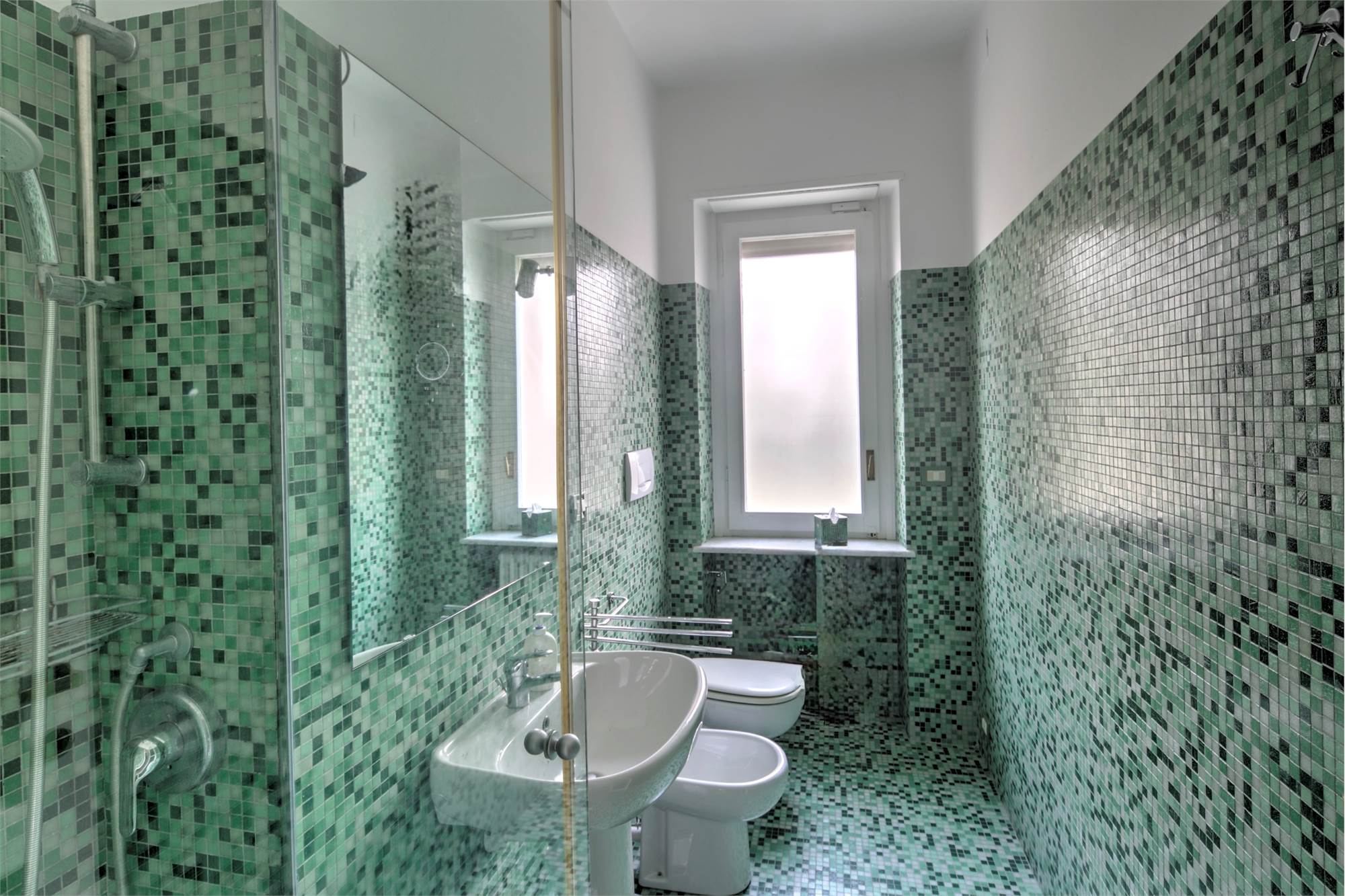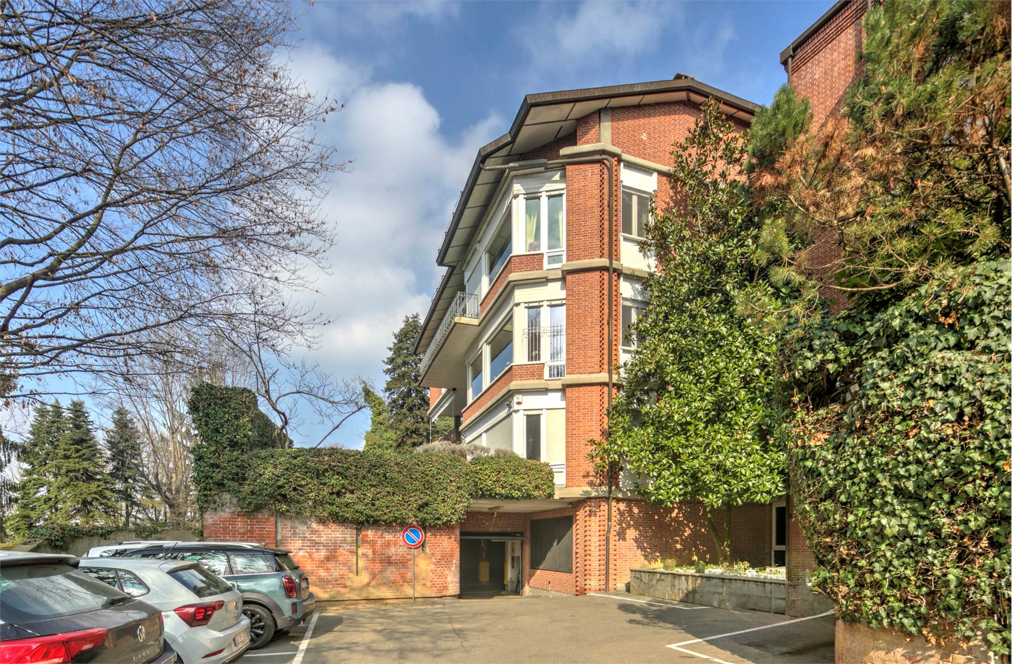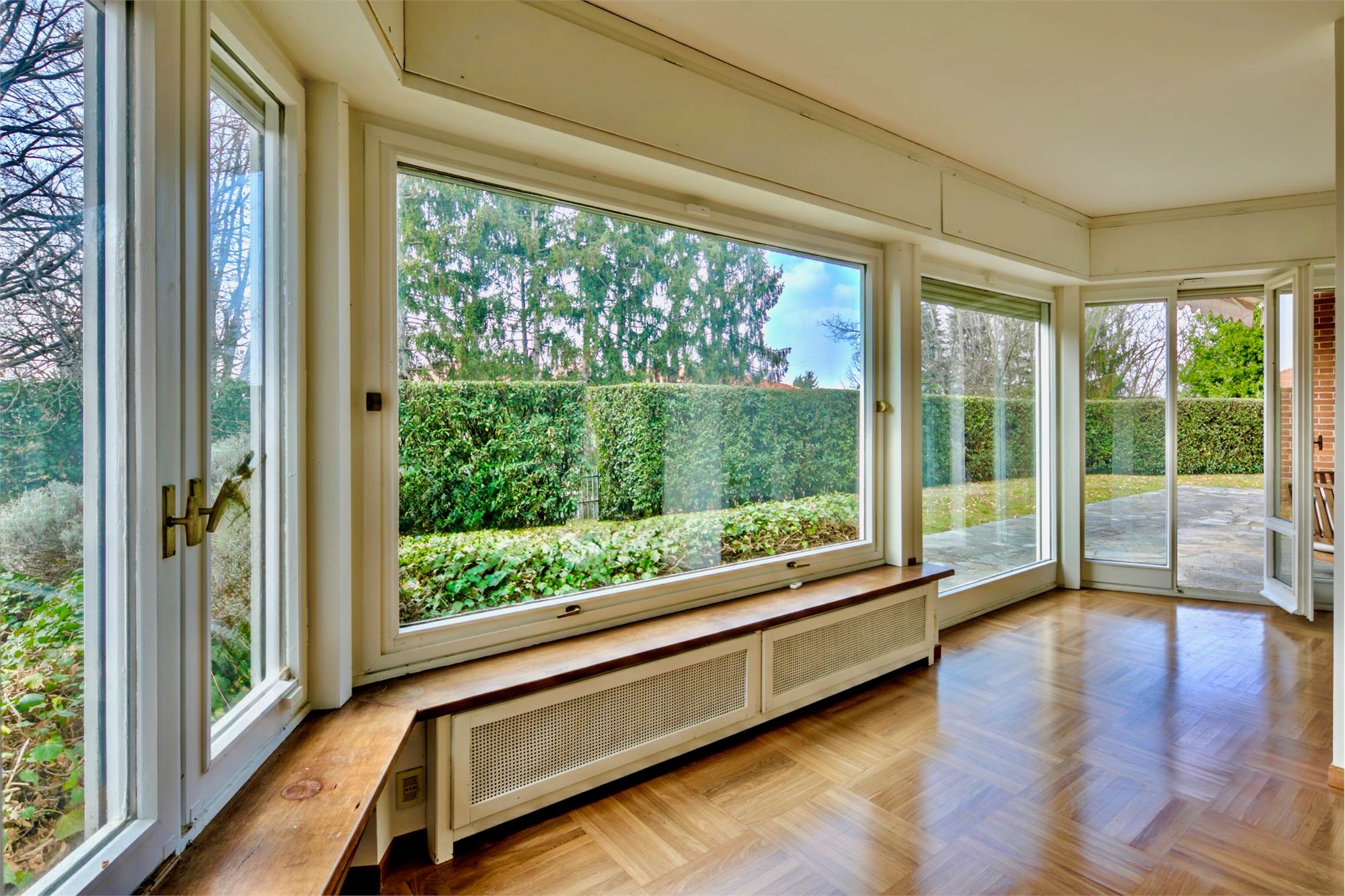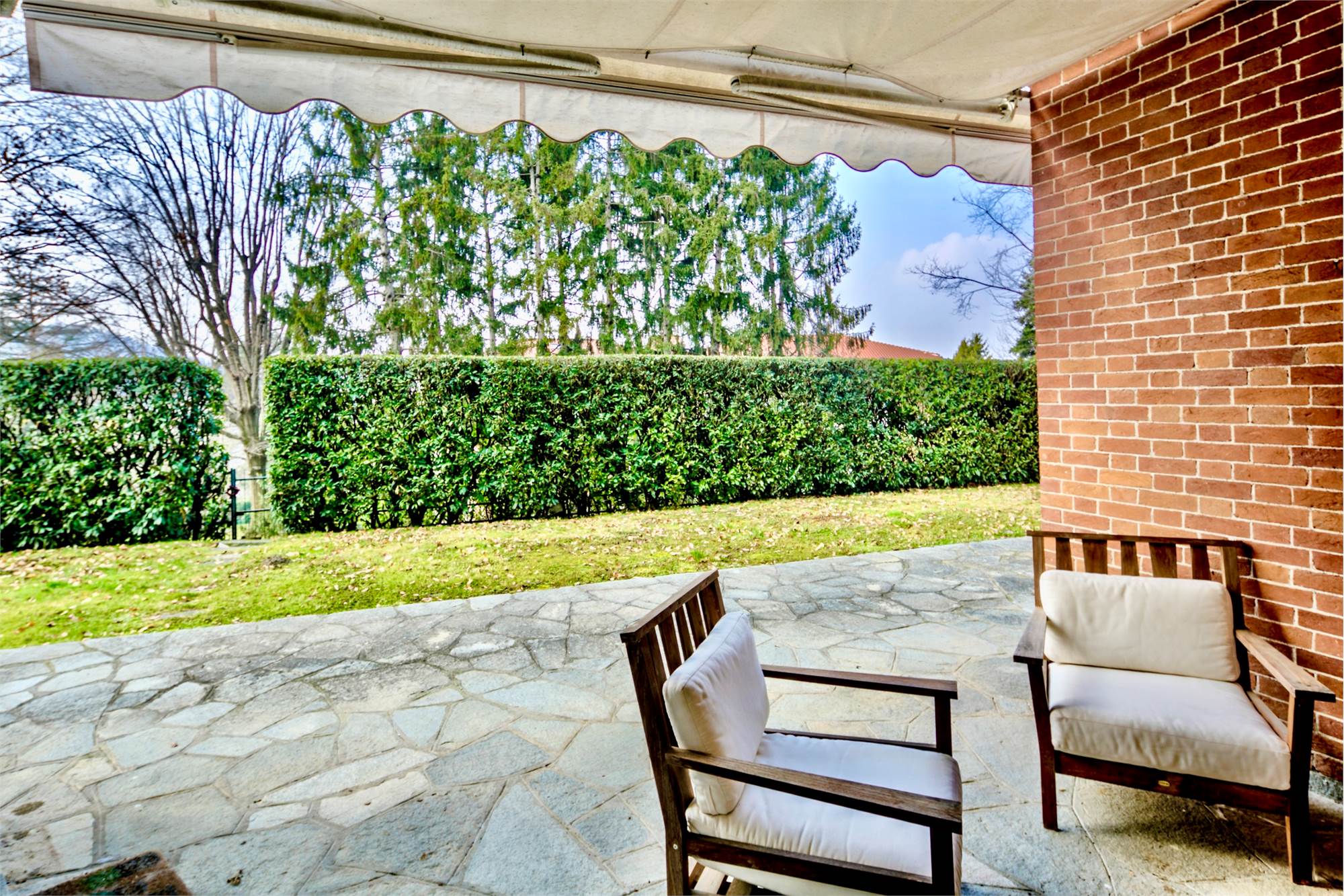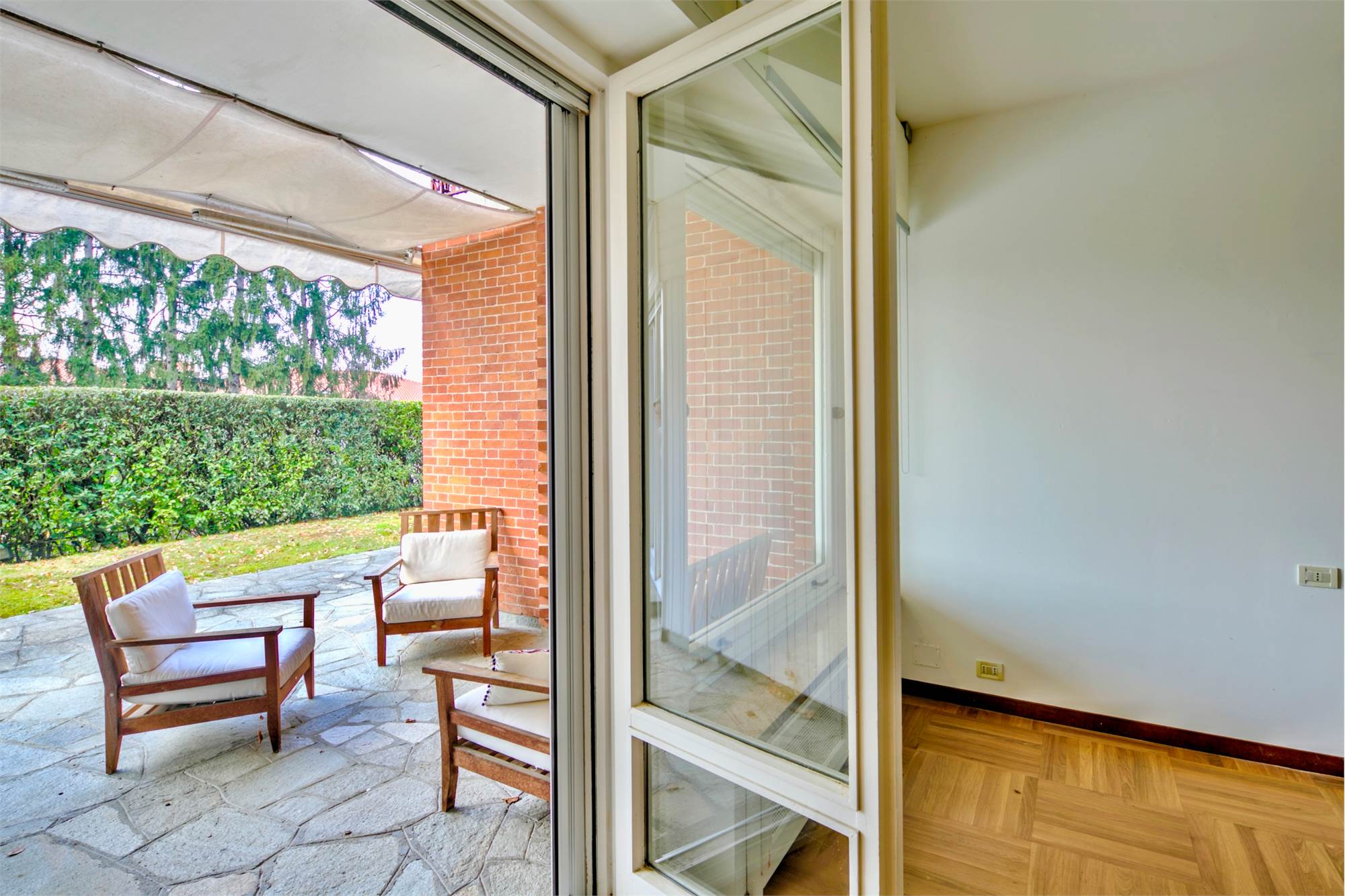 L'appartement, d'environ 330 mètres carrés, se distingue par la luminosité des pièces et la distribution harmonieuse des espaces. Le cœur de la maison est un grand salon double avec cheminée, agrémenté de larges ouvertures sur le magnifique jardin plat privé, parfait pour des moments de détente, de réception et de convivialité. La zone jour est complétée par une salle à manger et une grande cuisine moderne, éventuellement meublée.
