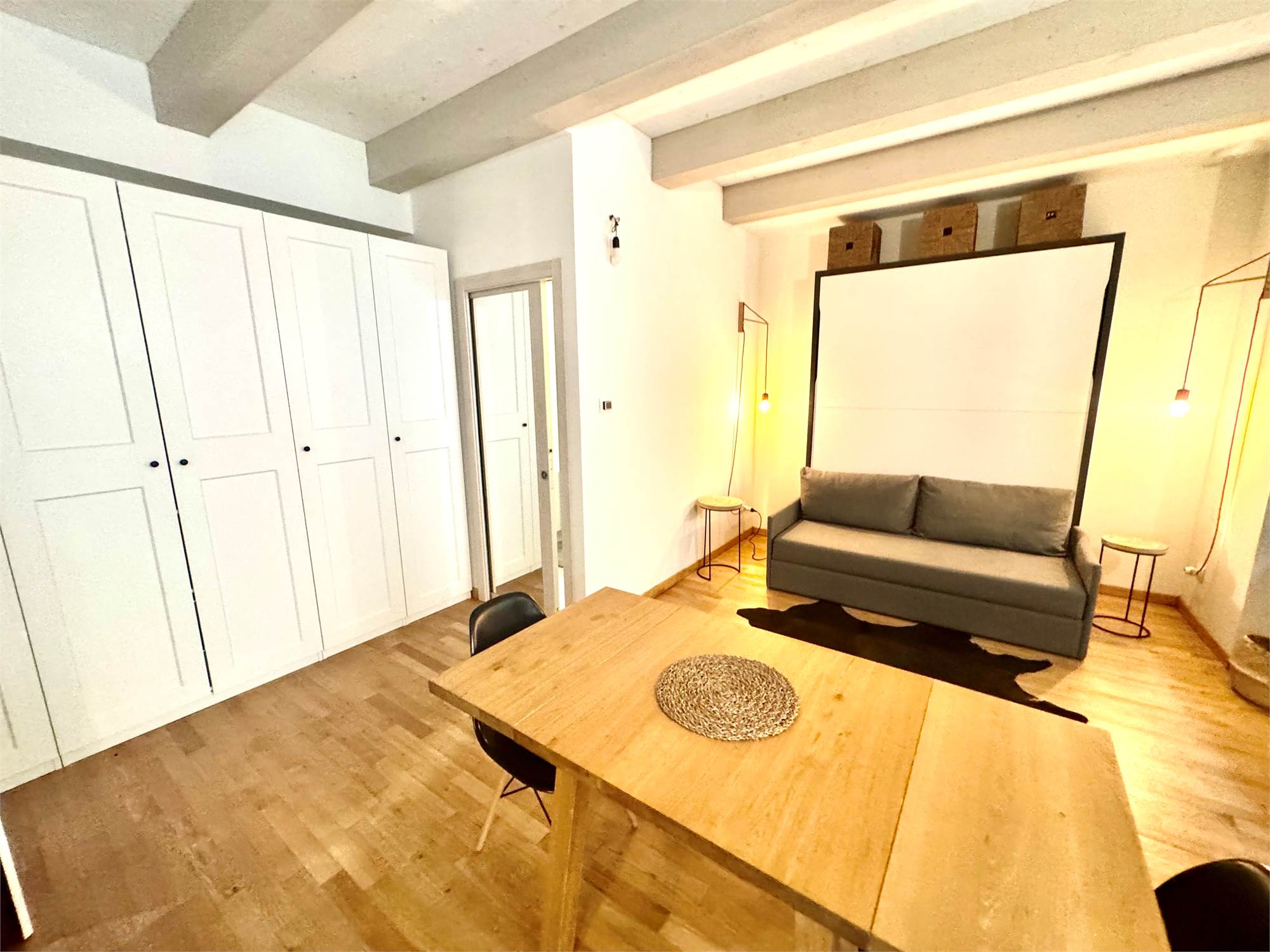 Appartamento pari al nuovo di 42 m2 circa, al primo piano, composto da ingresso su soggiorno molto affascinante e particolare, in parquet, con muri originali a vista, e belle finiture, divano con letto integrato a parete a scomparsa, cucina all'americana pari al nuovo completa di tutti gli elettrodomestici (compresa lavastoviglie ), zona lavanderia/ripostigio, grande bagno con doccione, cantina.