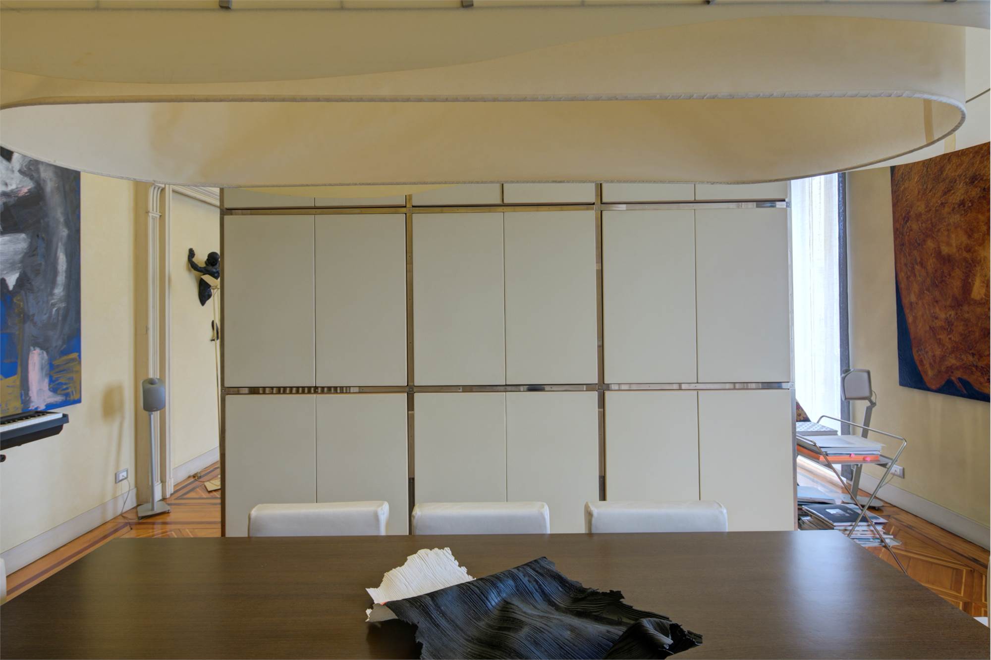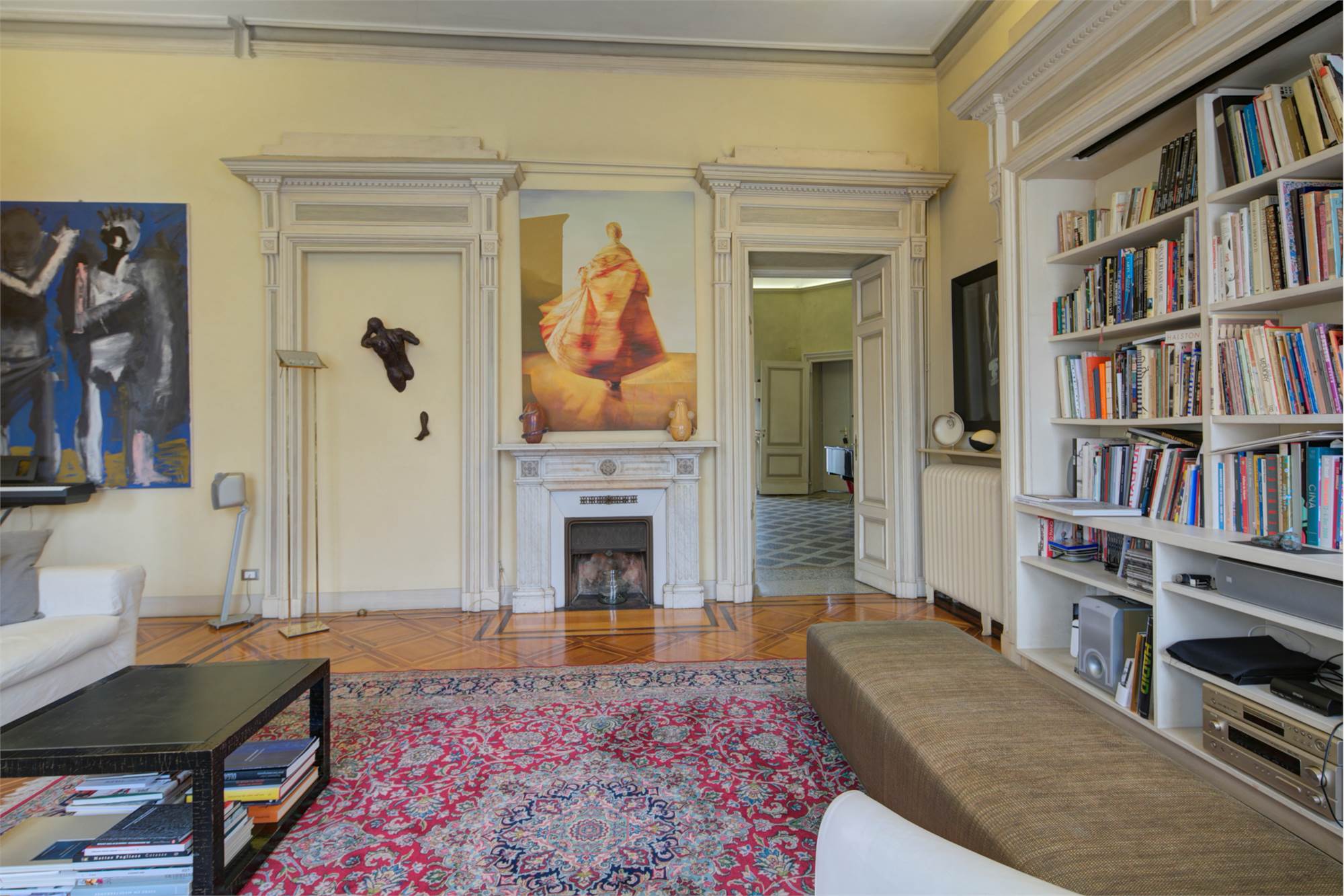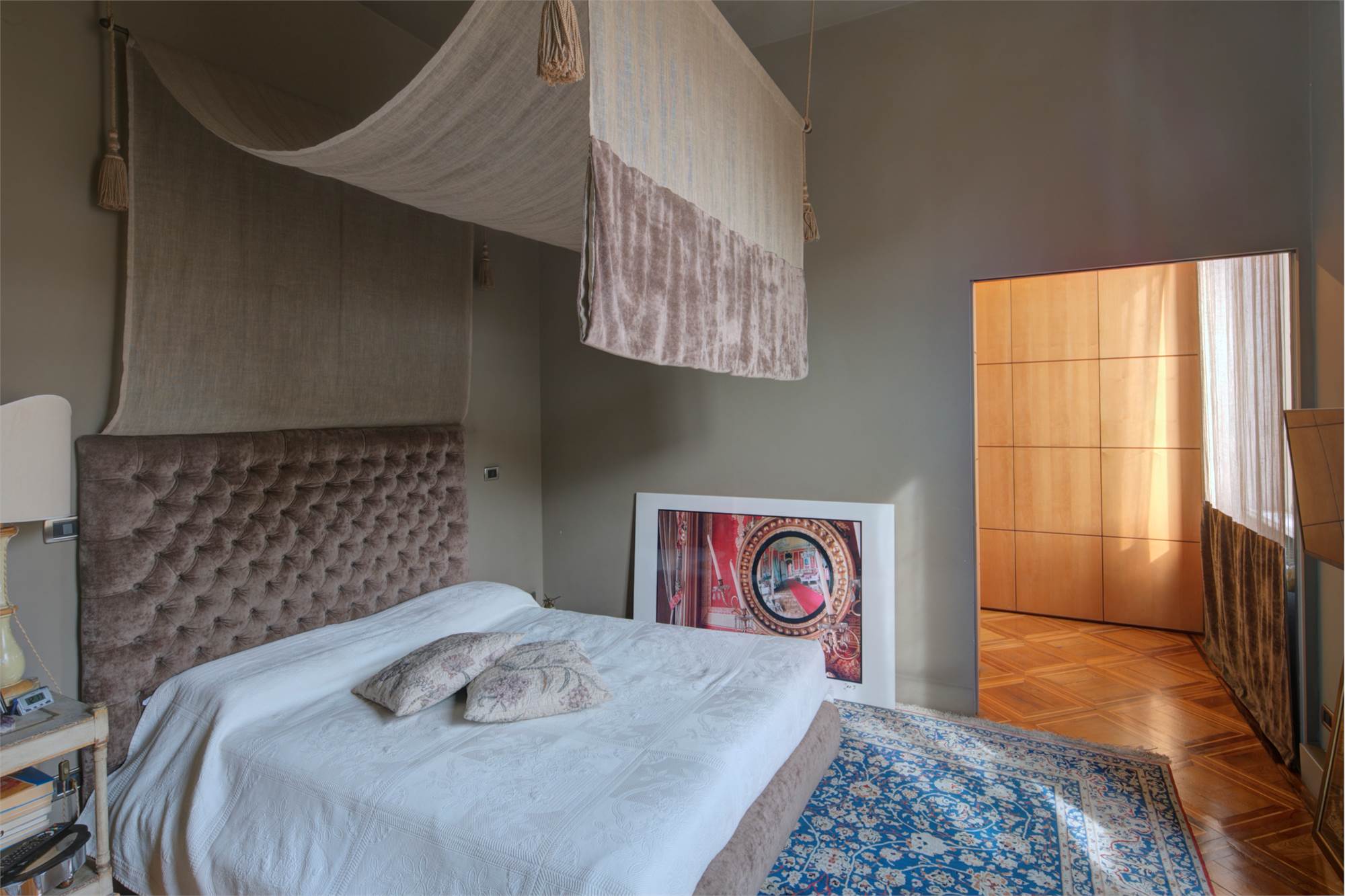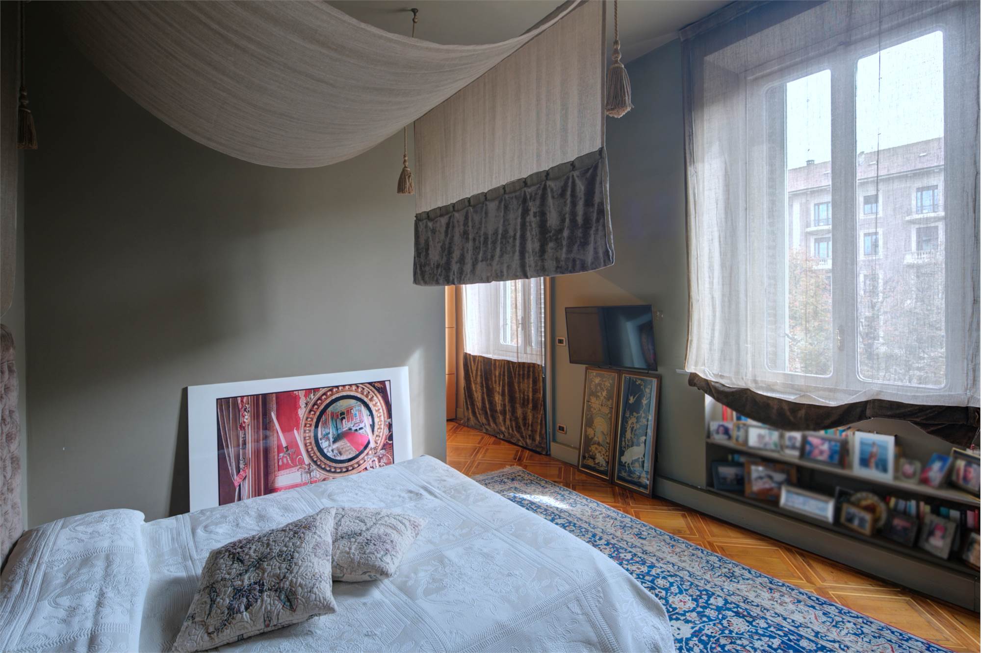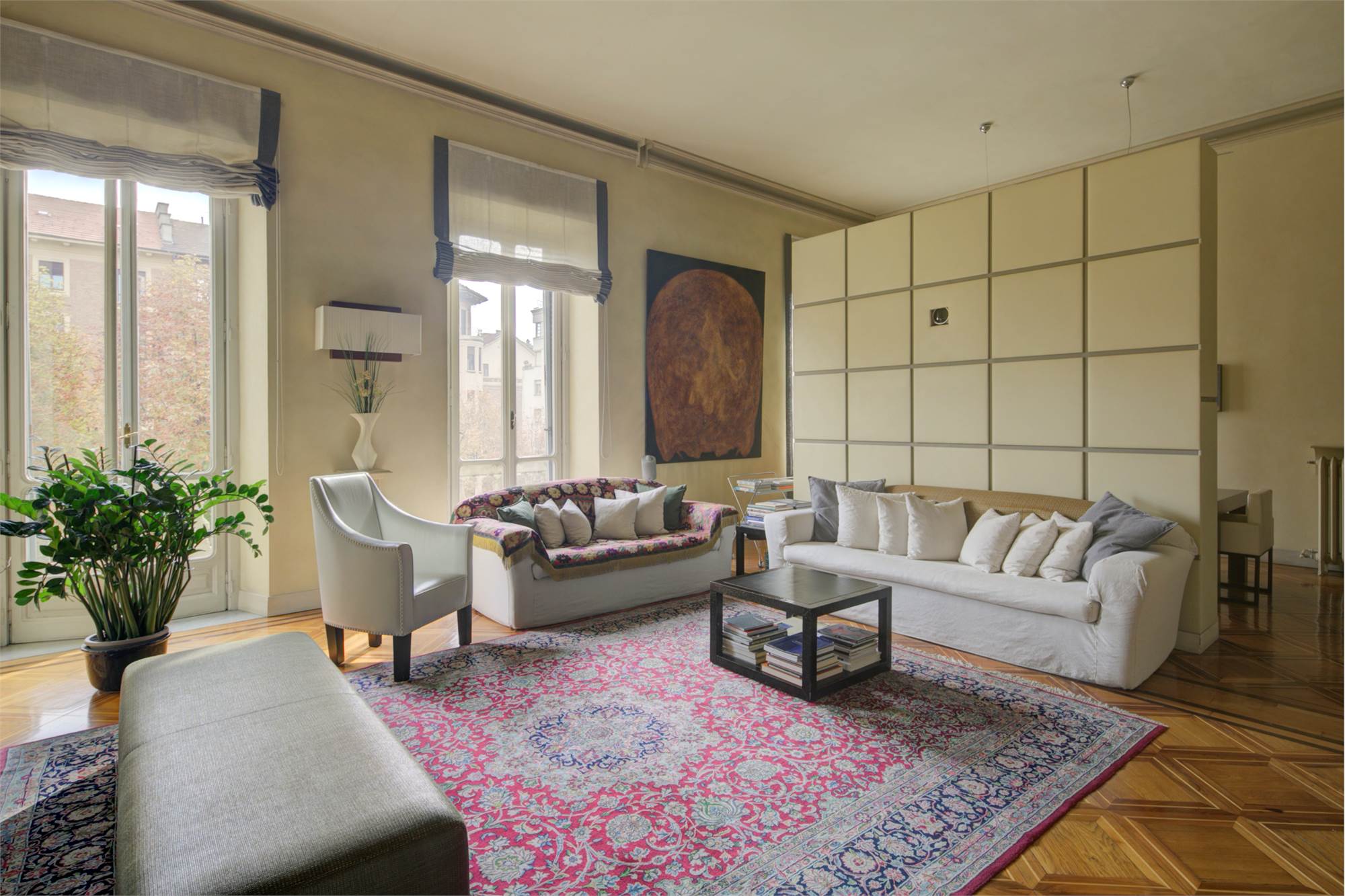L’abitazione è caratterizzata da alti soffitti (4,30 mt) con tripla esposizione e da una straordinaria luminosità con scorci sulla Piazza Solferino.