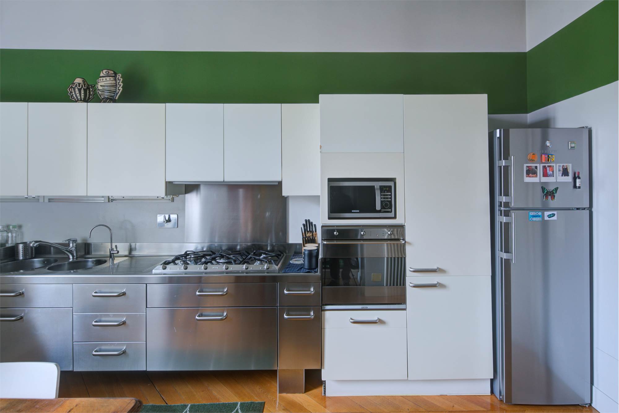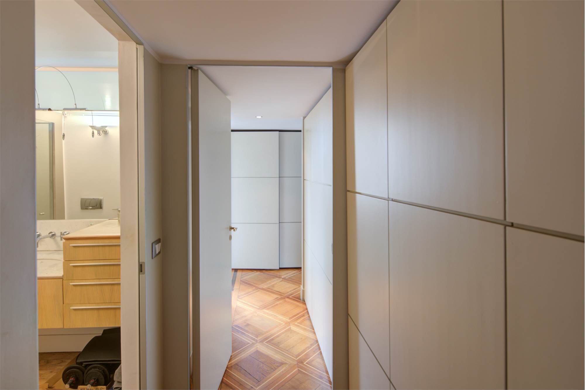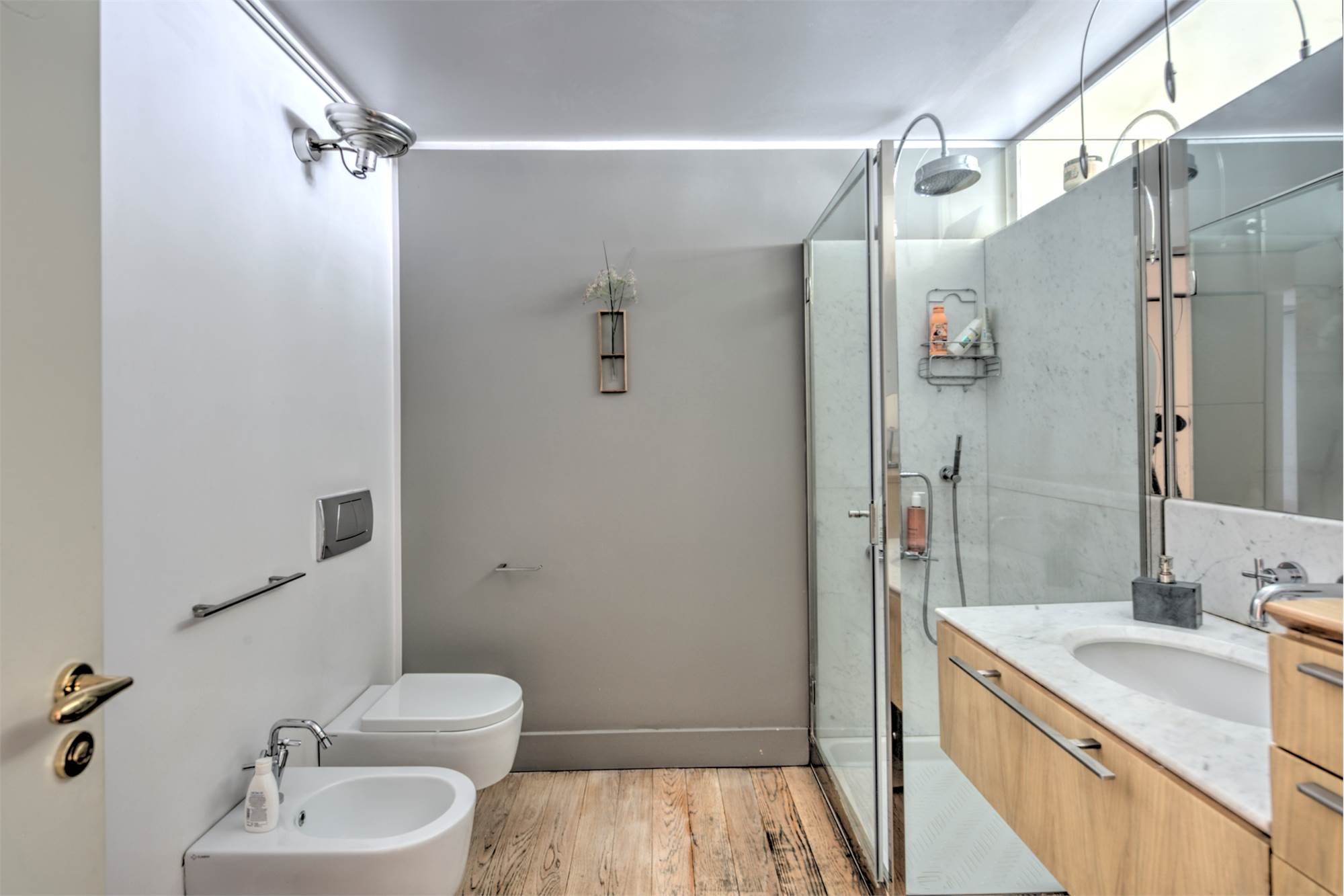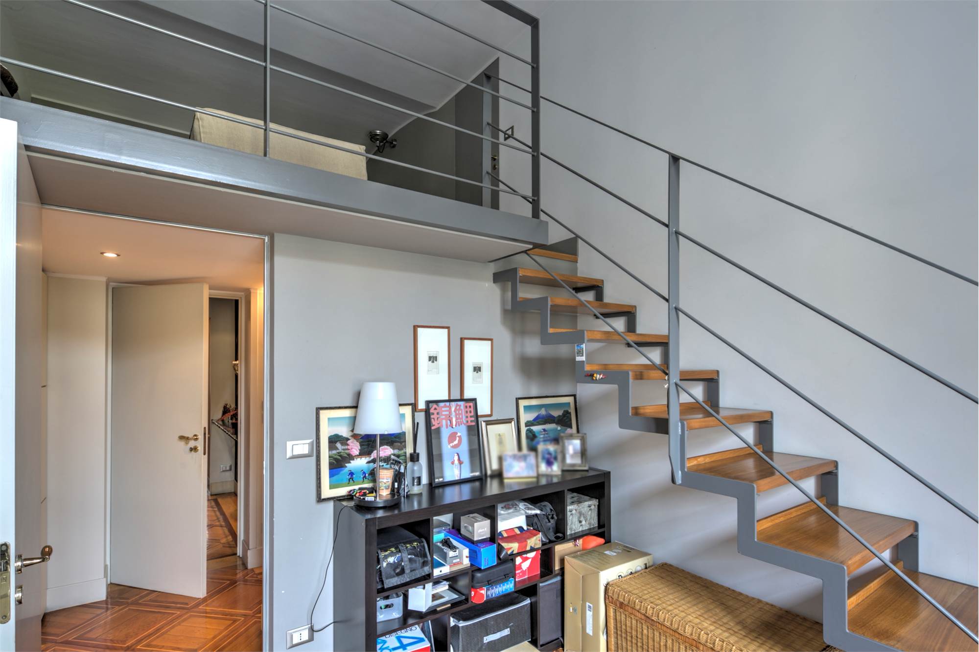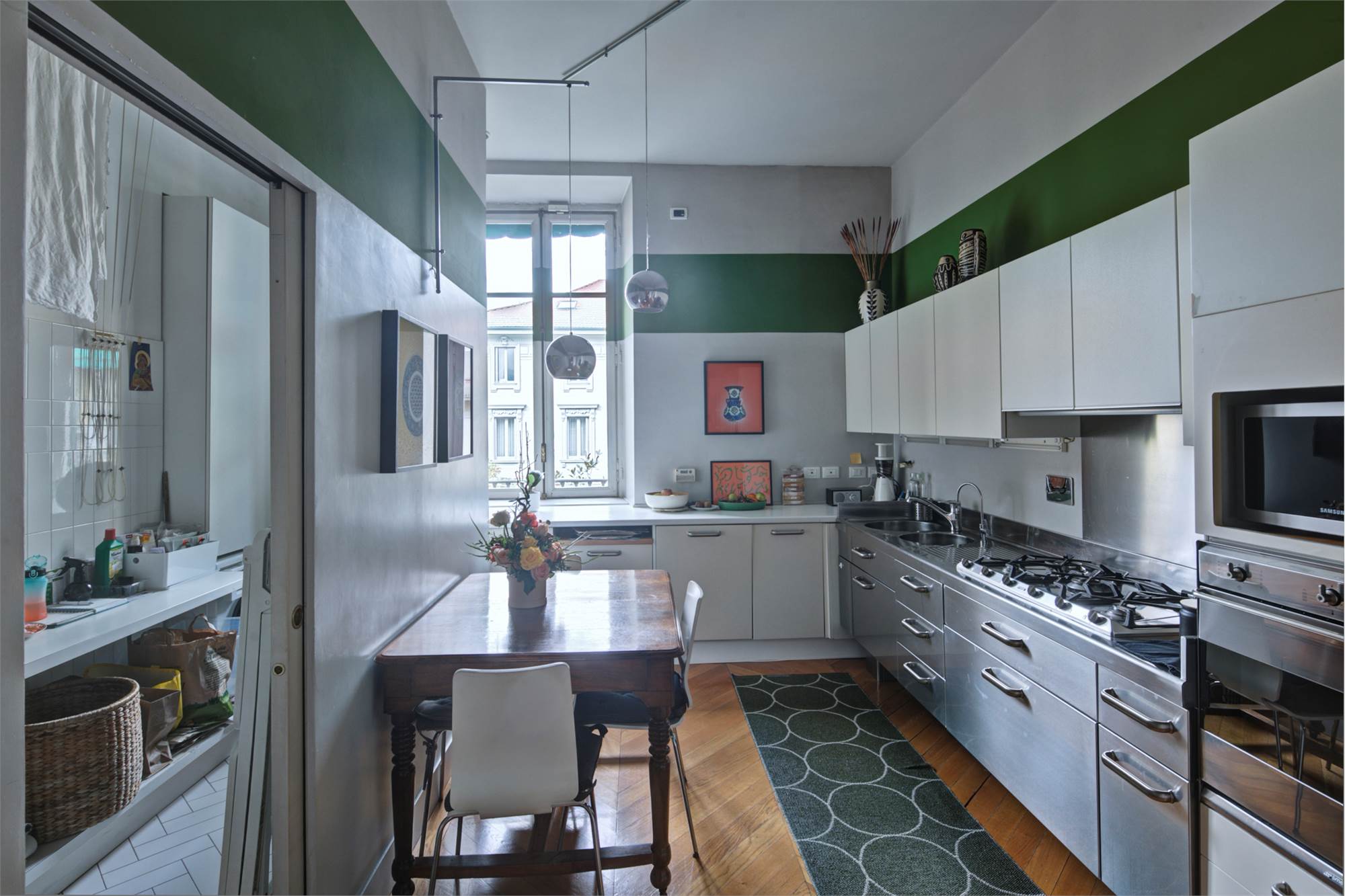 L’abitazione è caratterizzata da alti soffitti (4,30 mt) con tripla esposizione e da una straordinaria luminosità con scorci sulla Piazza Solferino.