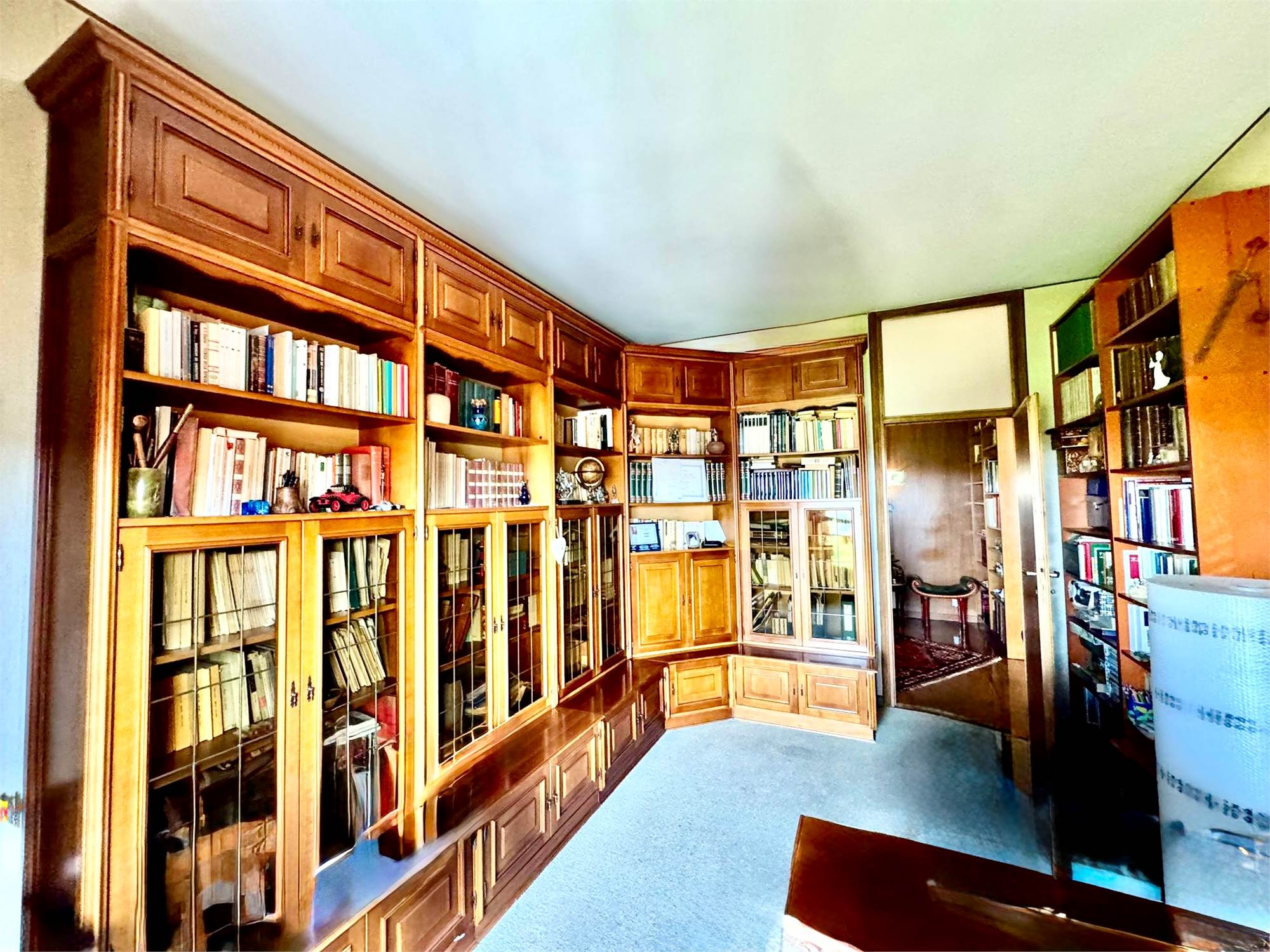 Lo studio, facilmente utilizzabile come terza camera, affaccia su Via De Canal e gode, come il soggiorno, di una vista aperta verso i monti; anche questo ambiente dispone di sfogo su profondo balcone esterno, come la maggior parte dei locali della casa.