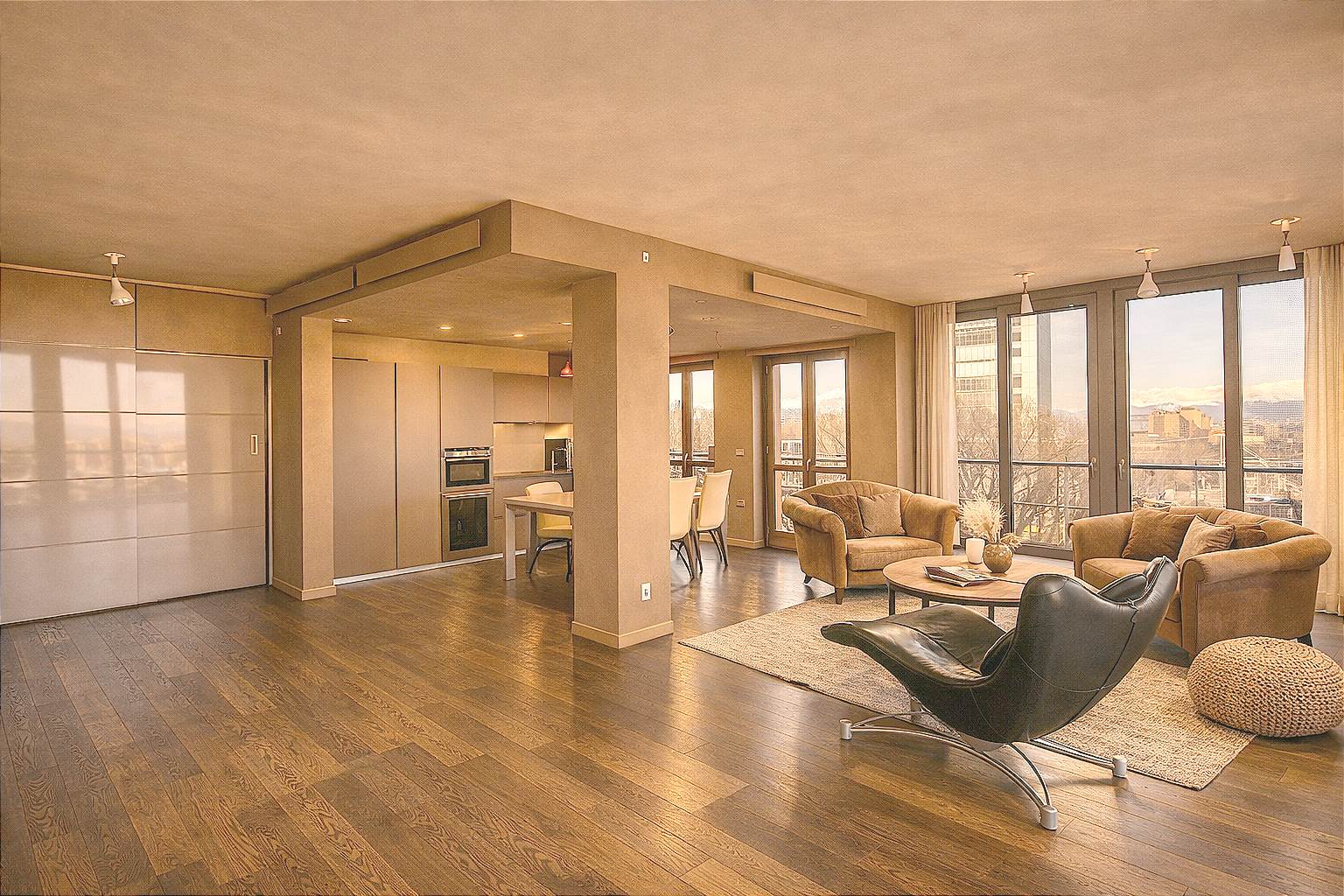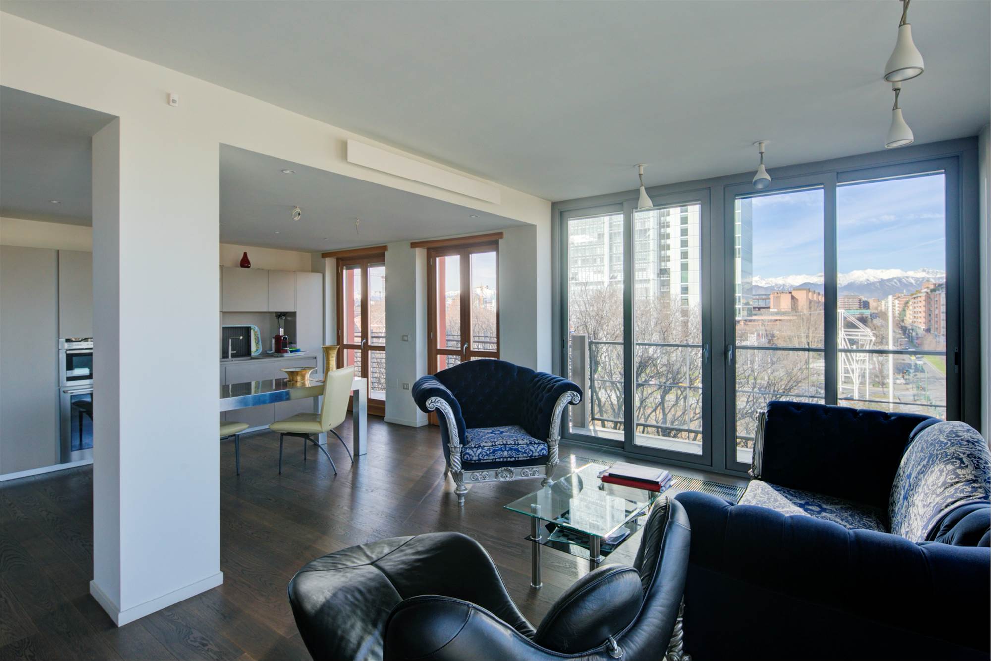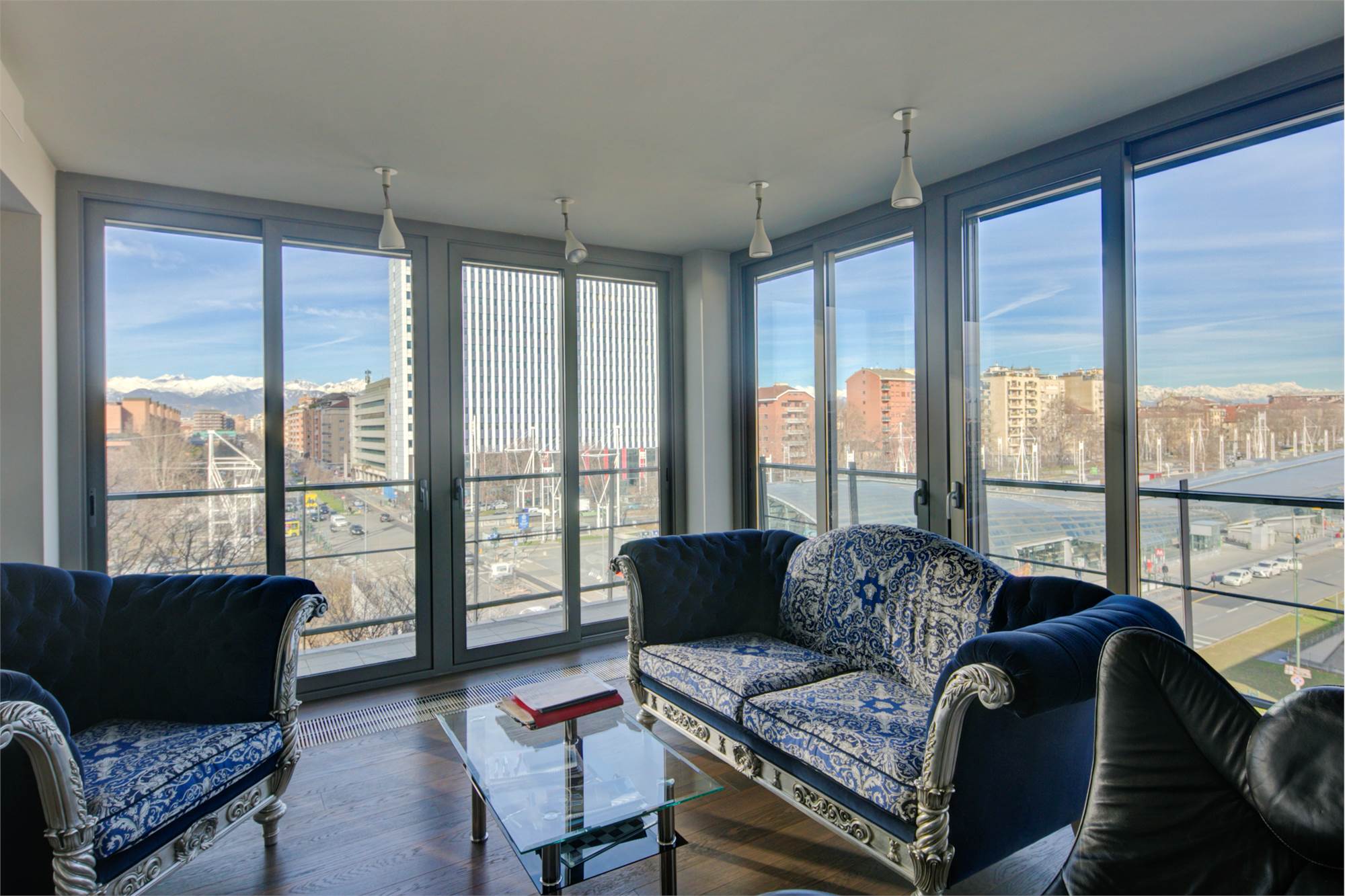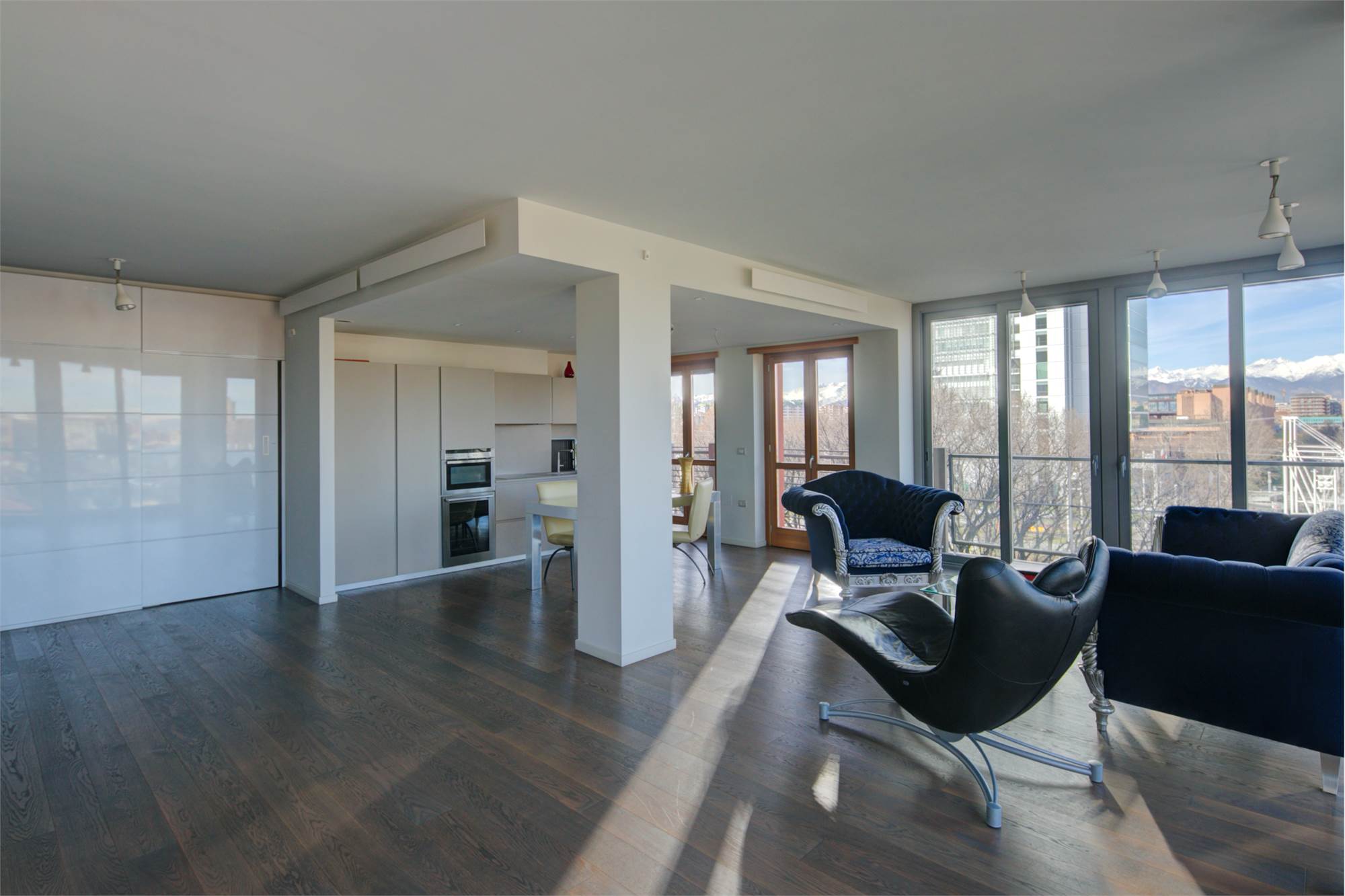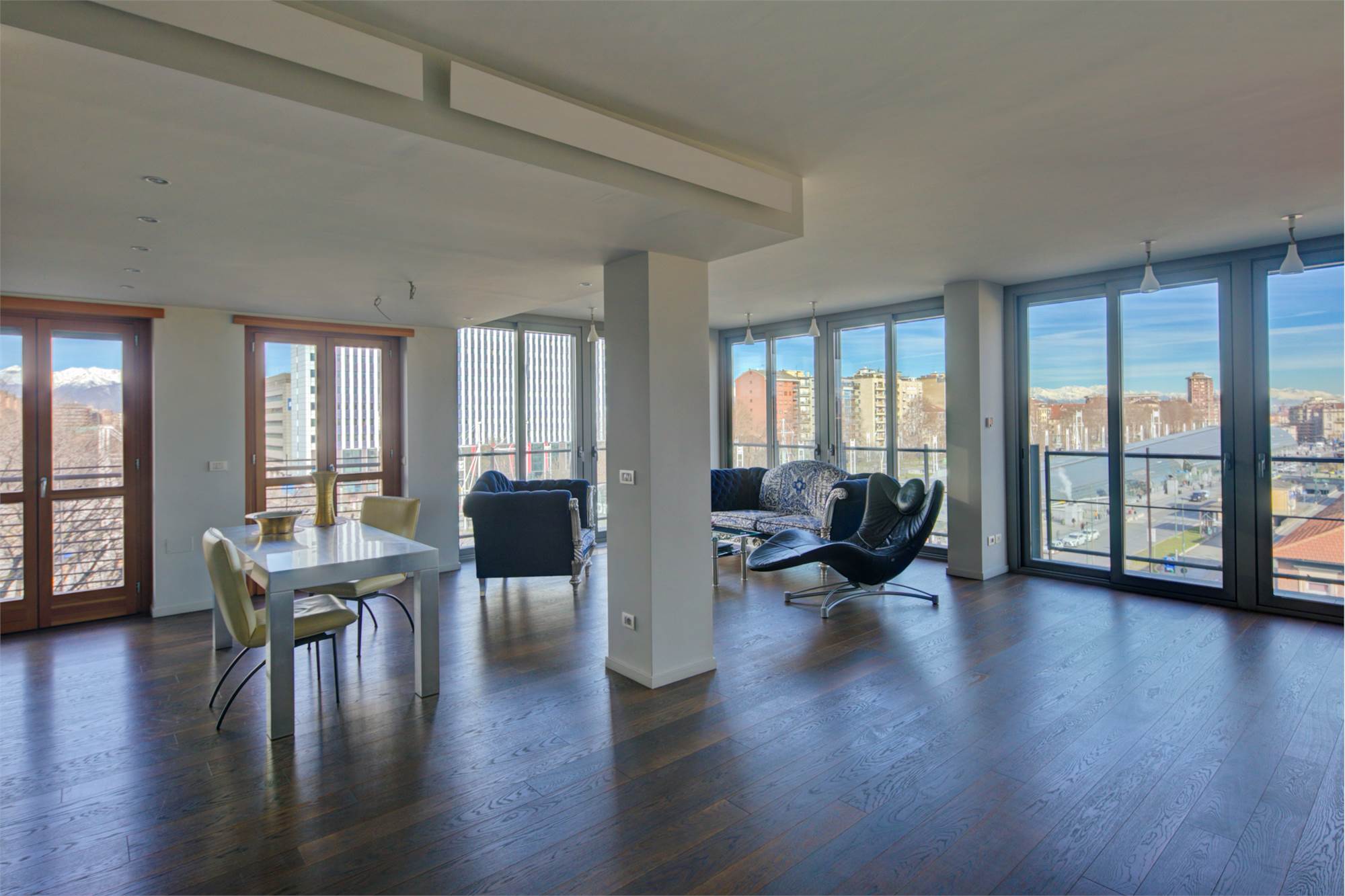 Appartamento panoramico in classe A2 con ampie vetrate e balcone perimetrale.