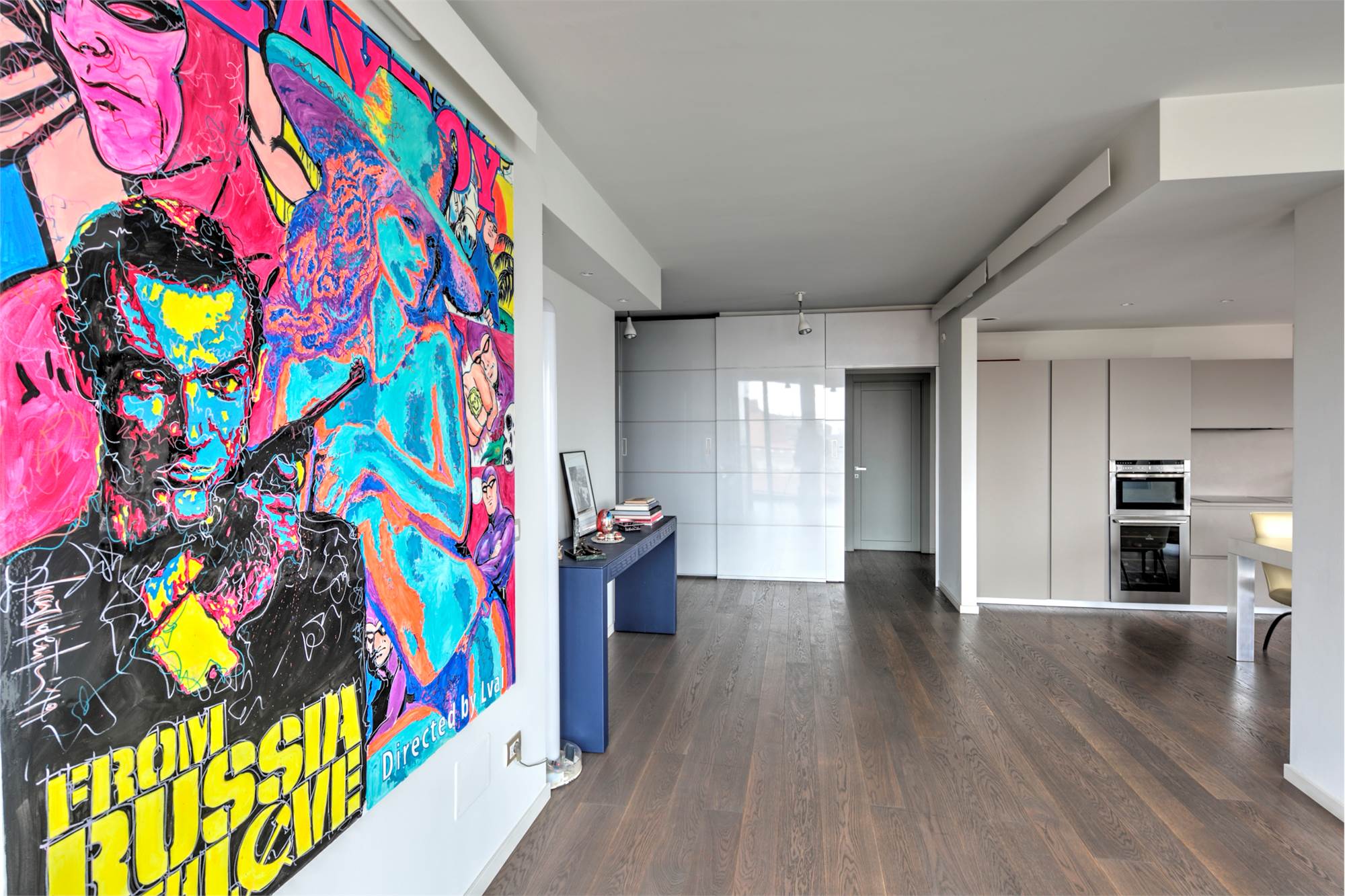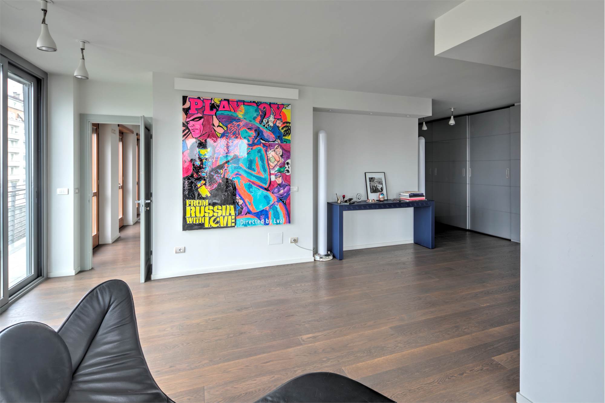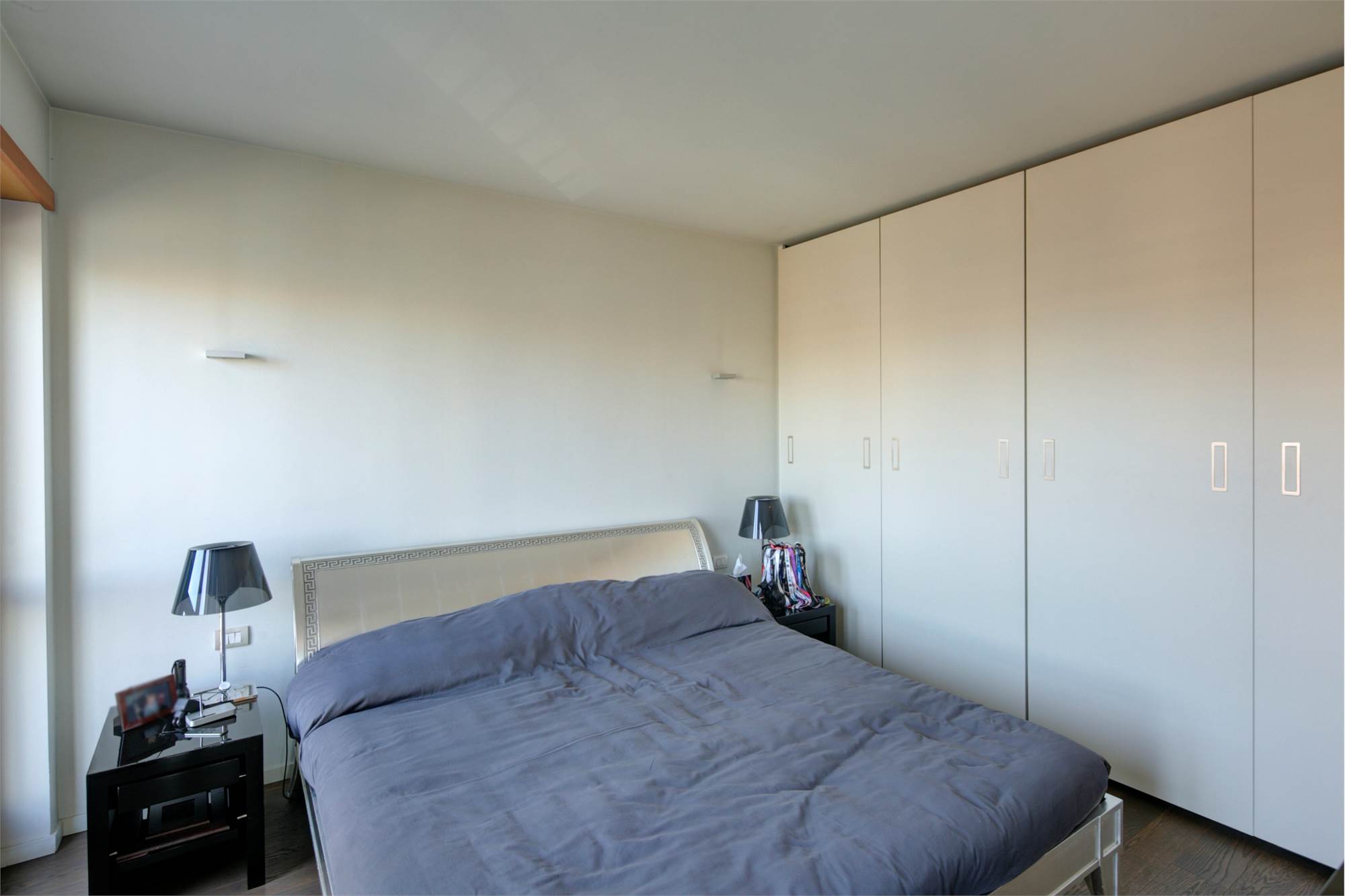 L’alloggio è composto da ingresso su ampio salone living con zona cucina, due camere, cabina armadi, doppi servizi, sauna privata, lavanderia e disimpegni. Completa la proprietà una cantina.